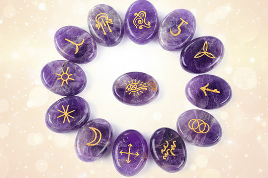 Carved Crystal Gemstone Runes | 7 Crystal Varieties | Divination