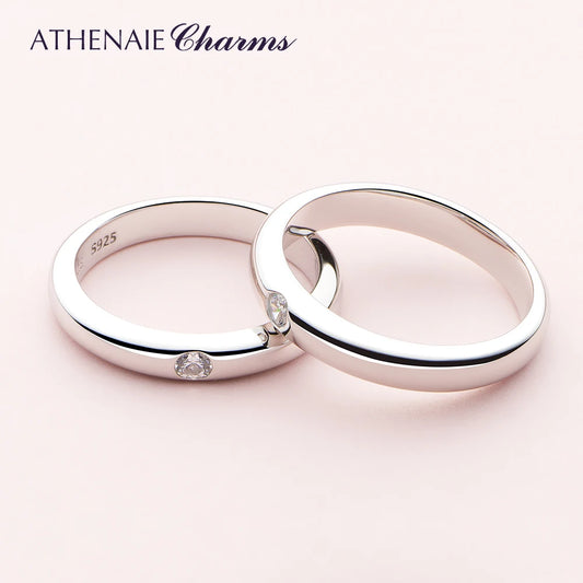 925 Sterling Silver Clear CZ Simple Sparkling Stackable Couples Ring Set