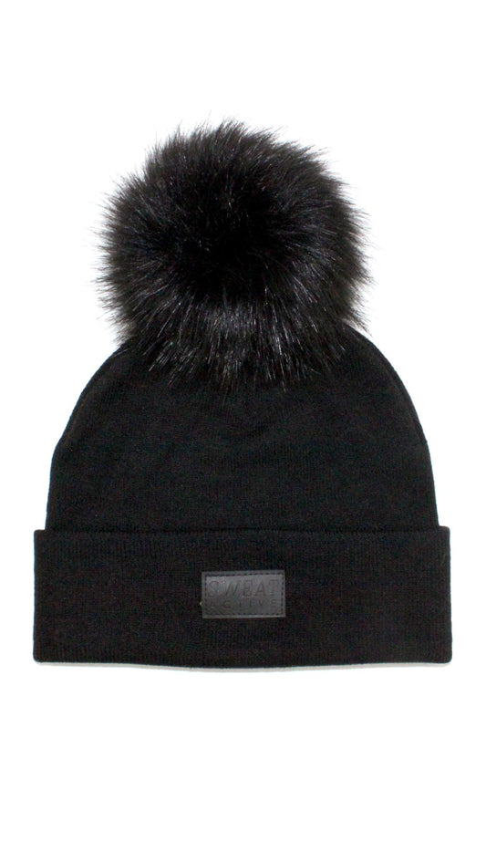 Fur Pom Beanie Hat - Black