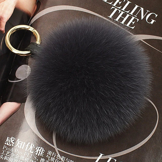 Real Fox Fur Keychain Natural Fur Pompom Ball Bag Charm Luxury Key Ring