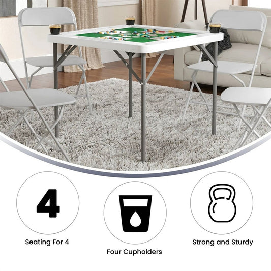 4-Player Square Folding Card Game Poker Table w/ Green Felt Top and Cup Holders