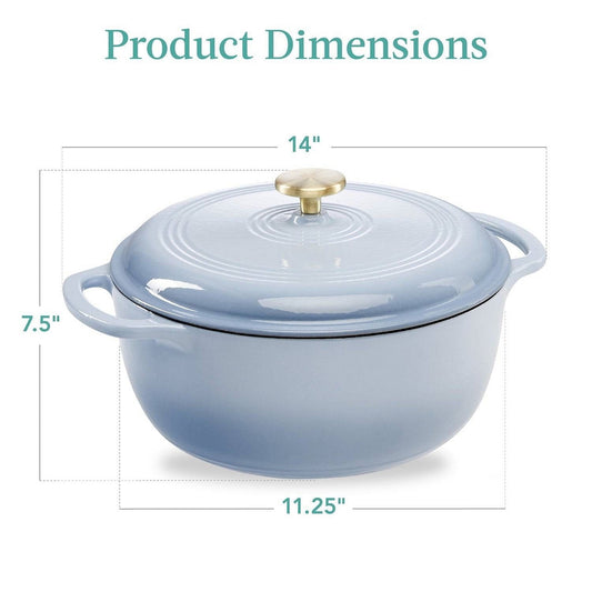 6 Quart Large Baby Blue Enamel Cast-Iron Dutch Oven Kitchen Cookware