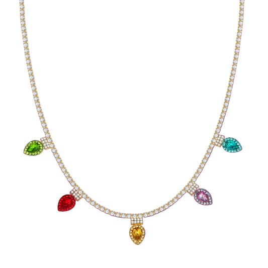 Beautiful Multi-Colored Crystal Christmas Light Bulb Chain Necklace Holiday Jewelry Gift