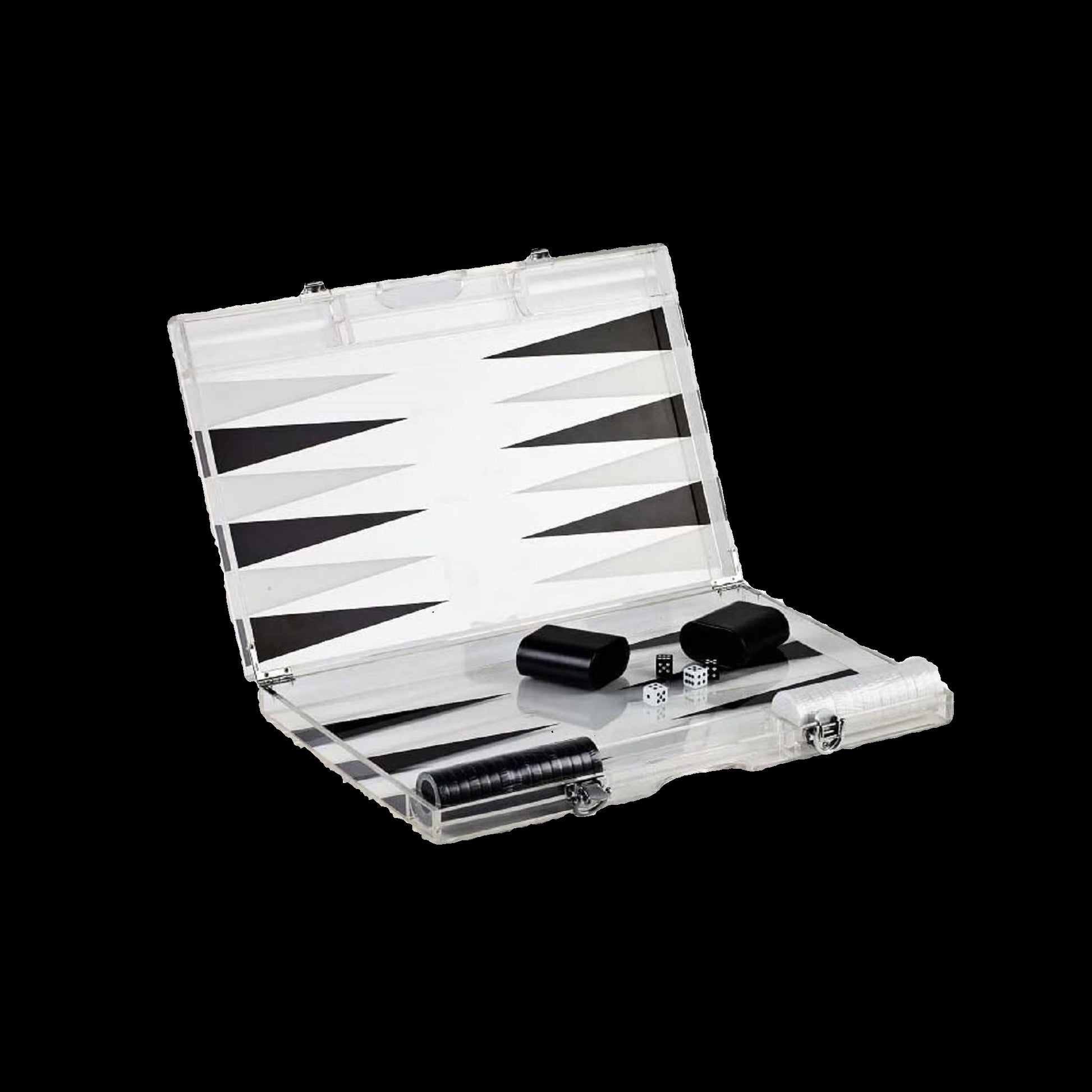 Step into the world of refined gaming with our Premium 18-Inch Lucite Backgammon Set. Crafted with precision and attention to detail, this set is more than just a game – it's a statement of style. The Lucite construction gives the board a clear and elegant appearance, making it a centerpiece for any game night. The 14-inch size strikes the perfect balance, offering a playable surface that remains portable and easy to store. Each piece is carefully crafted for a satisfying gameplay experience. The precision-made checkers and dice add an extra layer of enjoyment to every move, whether you're a backgammon enthusiast or just getting started. Not only does this set deliver in terms of aesthetics and gameplay, but it's also built to last. The sturdy construction ensures that you can enjoy countless games without worrying about wear and tear. For added convenience, we've included a custom-designed carrying case. It not only protects your backgammon set during travel but also enhances the overall experience with its stylish design. Elevate your gaming experience with the Premium 18-Inch Lucite Backgammon Set – where elegance meets entertainment.